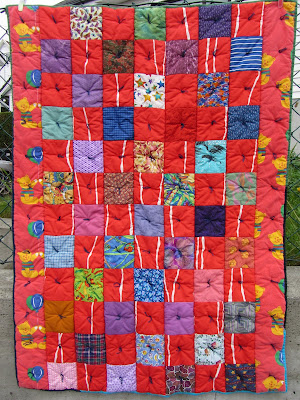 ReplyDeleteHi! I think this should win a prize in a show and to be in the magazine cover! It's most beautiful and I love the puffiness! Colours are great and tied knots make it special! I'm sure this quilt will be loved!